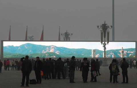 In this Feb. 3. 2014, Kim Gun-ja, 89, former comfort woman who was forced to serve for the Japanese troops as a sex slave during World War II, passes by her wedding picture, top center, at the House of Sharing, a nursing home and museum for 10 former sex slaves, in Toechon, South Korea. [Photo/icpress.cn]