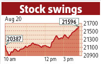 Hong Kong stocks, which ended 1208.5 points higher yesterday after a dramatic 1200-point drop on Friday, are expected to gain further this week as a result of the US government's moves to defuse the subprime mortgage crisis and the foreign exchange authorities' new policy of allowing mainland residents to invest in the market. After two weeks of stock turmoil, things began to look up for Asian investors yesterday after the US Federal Reserve's intervention to alleviate the global credit crunch. Hong Kong, which closely tracks Wall Street, did particularly well as blue chips rebounded to rise nearly 6 percent in their best one-day gain since October 1998. Hong Kong-listed mainland players also recorded their best one-day performance in the last seven years with an 8.7 percent jump. Market watchers labeled it an "auspicious" day for the Hong Kong market as favorable US and mainland policies converged to pump up the shares. "The market is expected to gain further this week," said Castor Pang, a strategist from Sung Hung Kai Financial Group, a securities consulting firm in Hong Kong. "We had two pieces of good news today. We heard in the morning that the US central bank had cut its discount rate to prevent a credit squeeze. This in itself was a huge boost for Hong Kong stocks. In the afternoon, the foreign exchange regulator announced it will allow mainland residents to invest in the Hong Kong stock market, a measure that will surely lift stock prices in Hong Kong," said Pang. Hong Kong-listed shares of mainland companies rose 961.25 points to 11963.77. Among the benchmark stocks, mainland players led the rally yesterday, with China Life, the country's biggest insurer, soaring 9.4 percent to HK$30.2, making it the day's most-traded stock.