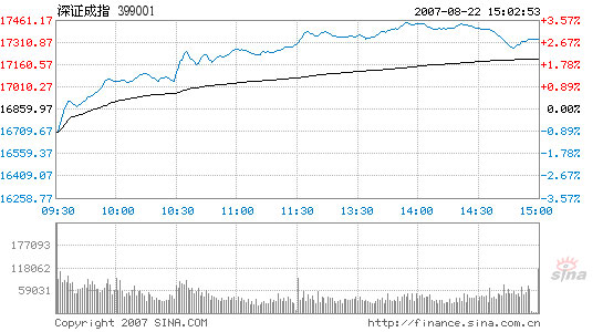 The Shenzhen Component Index, tracking the smaller Shenzhen Stock Exchange, opened lower at 16,704.93 and stayed within a range of between 16,667.94 and 17,446.10. The index closed at 17,331.99, up 472.02 points or 2.8 percent.