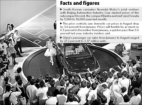 Updated: 2007-10-10 09:52 A new bout of price battles in China's car market, the second-biggest in the world, has broken out following South Korean carmaker Hyundai Motor Co's aggressive price cuts on its locally-made models last month. ![]() Hyundai's joint venture with Beijing Automotive Industry Corp slashed prices of the subcompact Accent, the compact Elantra and mid-sized Sonata by 5,000 to 16,000 yuan to buck a downward trend in its sales this year. Under attack from competition, January-to-August sales at the venture, which also makes the Tucson sports utility vehicle (SUV), plunged 20 percent from a year ago to 146,001 units, ranking eighth in the passenger car sector in China, according to industry data Hyundai's move has ignited a new round of price wars, which will be "awfully acute" this month, the seasonal peak car sales period in China, analysts said. Hua Xue, chief executive officer of cheshi.com.cn, a Beijing-based portal tracking nationwide car prices, said: "Other carmakers will have to follow suit to lure increasingly sophisticated Chinese buyers." As a result, domestic car prices will tumble by as much as 6.5 percent in December from January, a quicker pace than 5.6 percent last year, he said. Prices in August dropped by 3.6 percent from January due to earlier price contests, he said. According to market intelligence, Shanghai GM, a tie-up between General Motors Corp and SAIC Motor Co, will possibly launch a major price cut for the compact Buick Excelle - its best seller - to fight against the Hyundai venture. Analysts said Shanghai GM, the third-biggest passenger car producer in China, will have to cut prices to achieve its lofty 2007 sales target as its growth this year has slowed sharply. Sales in the first eight months hit 294,600 units, up 13.7 percent. The growth rate was 23 percent last year. |