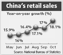 October retail up by 18% from '06By Xin Zhiming (China Daily)