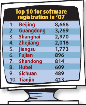 Duan Guijian, director of the Copyright Protection Center of China (CPCC), said most software companies in China had now realized the need to apply for copyrights for their software. Last year a record 25,666 applications were made, up 16 percent on the previous year. Beijing topped the list with the registration of 8,666 applications last year, accounting for 35 percent of the total, the center said. Duan said the center was working hard to shorten the copyright application process, which had been the subject of regular complaints. "We have already shortened the process from 60 days to 30, but 15 days is now our goal," Wang said. He said the government had strengthened its policies on infringement not only for the benefit of domestic software companies, but also to send a positive signal for further international cooperation on copyright disputes.