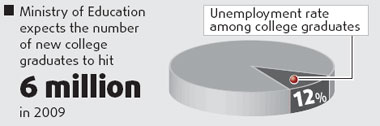 The issue of finding jobs for new graduates has been growing more urgency since the onset of the economic crisis and, according to government figures, 6.11 million will be fighting for positions this year along with the million or so who have been unemployed since last year. Facing the gloomy prospect under huge public pressure, governments at all levels have promoted self-employment as a way out of the mire. But Ge feels many factors work against this trend. "Our whole educational system is not geared towards nurturing entrepreneurs," he said. "For a very long time our schools - from primary to university - have excelled in cultivating academic types, but not the do-it-yourself Bill Gates type. "At the root lies our dominant social value that academic pursuits probably constitute a nobler ambition than most other endeavors."