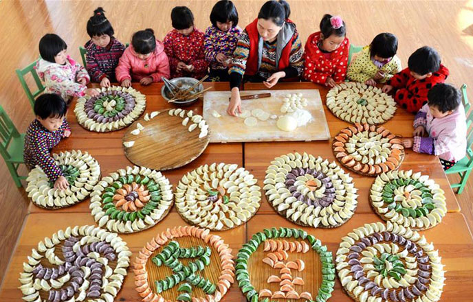 A couple celebrates their wedding at a hot spring hotel in Hangzhou, Zhejiang province, Nov 29, 2016. All the food is made from pumpkins, to raise awareness of healthy wedding banquet food. [Photo/VCG]