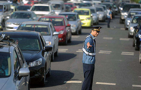 Police across China have been mobilized to cope with huge traffic flows along expressways during the eight-day national holiday, said Ministry of Public Security.