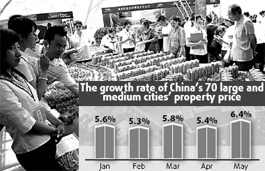 Prices in April alone rose 23.6 percent year-on-year, far exceeding the 11.3 percent jump of Shenzhen and 10.7 percent rise in Beijing during the same period. Bengbu, a city in East China's Anhui Province, also found itself on the list. The city, ranked 182nd in overall economic strength in the country last year, appears as No 5 on the chart with a May growth rate of 10.2 percent. Soaring prices are partly due to increasing movements by property developers into second-tier cities, said an industry analyst who declined to be named. Due to comparatively low land prices and little competition, Chinese real estate firms, as well as foreign investors, all quickened their expansion into secondary cities beginning last year. Yet according to Pan Shiyi, chairman of SOHO China, surging property prices in second-tier cities have been mainly driven by rising local economies and demand. "Property developers' expansion, in fact, increased the supply on the local market, which should be good news for the balance between supply and demand," Pan told China Daily. Robert Lie, CEO of ING Real Estate Investment Management Asia, said his company is optimistic about economic prospects in those locales, with second-tier cities part of their strategic focus this year due to a demand he says will grow at an average of five million apartments each year by 2015. Lian Younong, mayor of Beihai, said on June 27 that soaring property prices in the city were due to a strong economy rather than a growing bubble in the sector. Beihai's property prices, he said, will continue to rise in the future. Along with second-tier cities, the municipalities of Beijing, Shanghai, Shenzhen and Guangzhou also saw a sizzling property market despite government efforts to restrain prices. Statistics from the Beijing Real Estate Transaction Management website show that the average cost for new residential buildings in the capital jumped by 20.4 percent in June compared with the previous month, hitting 10,280 yuan per square meter. Shenzhen also experienced growth of over 30 percent over the past two months, with the average price now exceeding 20,000 yuan per square meter in the urban area of Guan'nei. According to the NDRC, property prices among China's 70 large- and medium-sized cities jumped by 6.4 percent year-on-year in May, the highest monthly figure since 2006. Although speculative buying and unwillingness by property developers to sell
