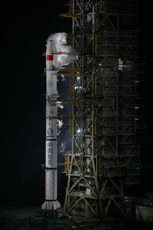 The carrier rocket Long March 3-A blasts off from the Xichang Satellite Launch Center in southwest China's Sichuan Province, Feb. 3, 2007. [Xinhua]