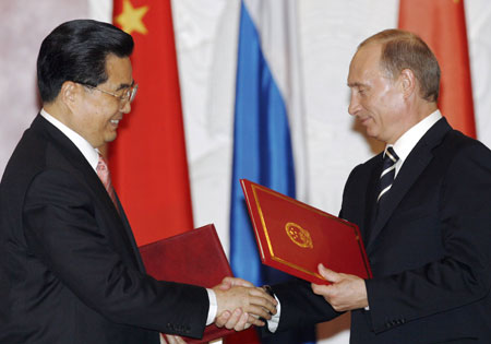 With the significantly increasing trade volume, the expanding scale of cooperation in investment, economy and technology, as well as more active regional and enterprise exchanges, opportunities have emerged for a rapid development of bilateral trade cooperation, the statement said. The two sides will further improve the mechanism of regular prime ministers' meetings and make full of it to push forward the cooperation in various industrial sectors, especially in engineering, electricity and high-technology, said the statement. According to the statement, Russia and China will also strengthen investment cooperation, encourage and protect mutual investment among enterprises, improve the quality and level of investment, and create a friendly environment for enterprise cooperation. Both sides pay high attention to energy cooperation between the two countries. Fully acknowledging the achievements already made between the two sides in oil and gas cooperation, China and Russia promised to gradually implement more large-scale energy cooperation projects, support Chinese and Russian companies to make more oil, gas, and electricity cooperation deals, and to cement and develop comprehensive, long-term strategic cooperative relations in energy industry. In the statement, the two sides also agreed to develop cooperation in other areas such as agriculture, medical treatment, machine building, aviation and automobile manufacturing, the promotion of scientific technologies, and many others. President Hu arrived in Moscow Monday for a three-day state visit to Russia, during which he will attend events marking "the Year of China in Russia." In addition to Putin, Hu will meet other Russian leaders to exchange views on the further development of the China-Russia strategic partnership of cooperation. |