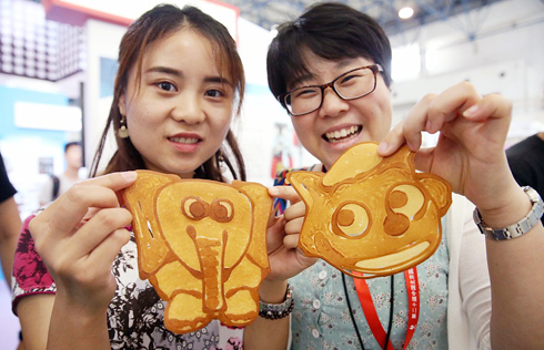Husbands draw pictures on their pregnant wives' bellies at a stadium in Hefei, Anhui province, on Jun 11, 2017. A total of 897 mothers-to-be participated in the event, which was recognized by the Shanghai China Records Headquarters as China's largest belly-painting event for pregnant women.[Photo by Wang Jun/For China Daily] |