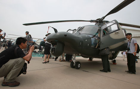 Journalists from all over the world were given a rare performance by China's attack helicopters on Tuesday.