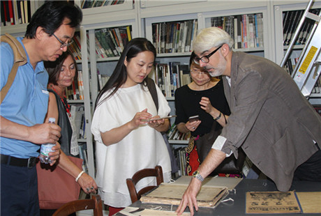 Chinese and US musicians exchange gifts during the 1973 visit. Provided to China Daily |