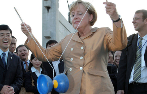 The combined photo taken on July 9, 2012 shows the logo of the 791 art zone (above) and citizens appreciating the painting at the 791 art zone in Nanchang, capital of east China's Jiangxi province. The 791 art zone of Nanchang opened on Monday. The art zone covers an area of more than 40,000 square meters. By far, 68 art organizations and more than 50 well-known artists settled down here. [Photo/Xinhua]