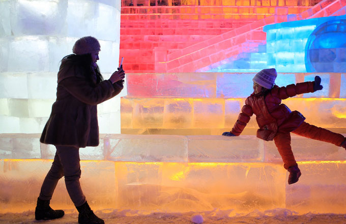 People watch works designed by Chinese painter, sculptor and designer Han Meilin at an exhibition to celebrate the artist's 80th birthday at National Museum of China in Beijing, capital of China, Dec 21, 2016. Han Meilin was named as UNESCO Artist for Peace in 2015. [Photo/Xinhua] |