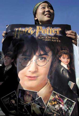A girl brings her own poster to take part in the launch of the chinese version of the latest Harry Potter book in Beijing yesterday. [AP]