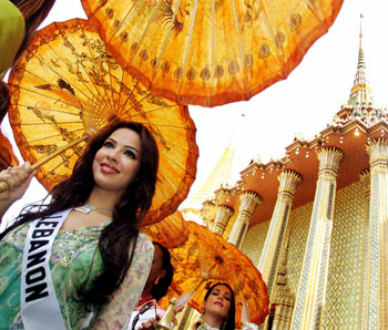 Temple of the Emerald Buddha in Bangkok May 11, 2005. The Miss Universe 2005