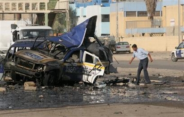 The violence came as Iraq's leaders resumed negotiations on a draft of a new constitution, a charter they hope will bring stability and help end the insurgency. The document was to be finished Monday, but the deadline was extended one week. A suicide car bomber targeting policemen detonated his vehicle outside the Nahda bus station in central Baghdad, one of the city's major transit points, the U.S. military said. A second car exploded in the open-air station's parking lot near buses that carry passengers to Amarah and Basra, Shiite-dominated cities in southern Iraq, police Capt. Nabil Abdul-Qader said. A second suicide bomber exploded his vehicle near the Kindi Hospital about 30 minutes later as many of the wounded were arriving for treatment, police said. It was unclear if the hospital was targeted in the blast. Abdul-Qader said 43 people died and 85 were wounded in the attacks. It was the deadliest series of single-day suicide bombings in Baghdad in weeks, although suicide attacks with far lower death tolls occur here regularly. Twenty-five people died in a suicide blast July 10 at an army recruiting center in Baghdad. On July 13 a car bomb in Baghdad killed 27 people, 18 of them teenagers or children and one American soldier. Also, two U.S. soldiers were killed, the military said Wednesday. One was killed Tuesday when a roadside bomb exploded near his patrol in southwest Baghdad and another was killed in an insurgent attack in northern Iraq. The latest attacks occurred shortly before Iraqi leaders started a meeting Wednesday to try to finish the new constitution. A Shiite negotiator, Khalid al-Attiyah, said talks were going so well that the document might be ready for parliament Wednesday. The blasts left several mutilated bodies strewn across the station parking lot and a large plume of black smoke visible throughout the capital as many traveled to work in the morning. Over a dozen cars and at least two buses were destroyed, leaving only rows of seat frames inside a bare metal hull. Several weeping men hugged beside a young boy inside the open-air terminal. One man searched through the charred buses for signs of his brother and cousin who were both at the station in the morning. Elsewhere, six new Iraqi soldier recruits were killed execution-style after gunmen stopped their minibus near Hawija, 30 miles southwest of Kirkuk, Iraqi Army Brig. Gen. Anwar Mohammed Amin said. The killed Iraqis were traveling to a training camp in Kirkuk. One of the stumbling blocks in the constitution debate was Kurdish demands for self-determination, which would give them the right to secede. On Tuesday, Kurdish leaders said they had no plans to break away from Iraq even through they wanted the right enshrined in the constitution. "There are rumors that the Kurds want to secede, but they are for unity," President Jalal Talabani, a Kurd, told reporters Tuesday. He said he expected the constitution to be finished before the deadline. Other Kurds defended their self-determination demand, although they insisted they have no plans to secede. Iraqi leaders expressed confidence on Tuesday that they would overcome differences over remaining issues by the new deadline. If no agreement can be reached this time, the interim constitution requires that parliament be dissolved. Different groups gave conflicting information on what had been resolved and what stood in the way of a deal. Prime Minister Ibrahim al-Jaafari, a Shiite, said the unresolved issues were federalism, the election law and the formula for distributing revenue from oil and other natural resources. Kurdish leaders said they objected to a proposal to grant special legal status to the Shiite clerical hierarchy in Najaf. Sunni Arab negotiator Mohammed Abed-Rabbou said "the most important point is federalism," underscoring Sunni concerns that a constitution that grants regional autonomy could eventually divide the country. Al-Jaafari said disagreements were largely over details and he expressed confidence that Iraq's constitution could be finished within a week. "I hope that we will not need another extension. The pending points do not need too much time and God willing we will finish it on time," he said Tuesday. The delay was an embarrassment for the Bush administration, which insisted that the original deadline be met to maintain political momentum and blunt Iraq's deadly insurgency. If agreement on a constitution is reached, Iraqis will vote around Oct. 15 to accept or reject the charter, leading to more elections in December for the country's first fully constitutional government since the U.S.-led invasion toppled Saddam Hussein's regime in 2003.