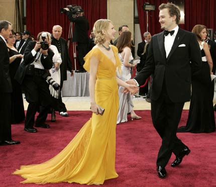 Williams (L) dances on the red carpet with her fiance Heath Ledger (R),