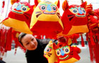 The photo taken on Feb. 9, 2010 shows lanterns featuring the theme of the unity of China's 56 ethnic groups at a lantern art festival for the upcoming Spring Festival held in Kunming, capital of southwest China's Yunnan Province. Nearly 100 sets of artistic lanterns that reflect folktales and traditional custom are presented in the event. [Photo/Xinhua]