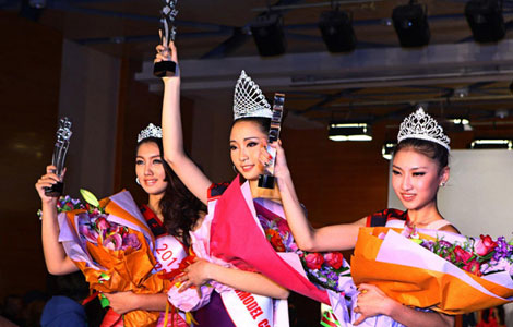 A woman shows traditional decorations for a Chinese wedding ahead of the upcoming Qixi Festival in a shop in Bozhou, Anhui province, Aug 5. [Photo by Liu Qinli/Asianewsphoto]