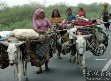 印度婦女用驢子運送家當