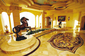據(jù)悉,“休·海夫納天空別墅”每間套房內(nèi)都設(shè)有寬敞的客廳、餐廳、衛(wèi)生間、多媒體室、健身房、桑拿房、溫泉區(qū)、酒吧和日光浴室,客廳里鋪有豪華的意大利大理石,擺放著精美的大型銅雕,包括衛(wèi)生間在內(nèi)的每個房間都備有一臺大屏幕的等離子電視。此外,幾乎每個陽臺上都配有一個面積足有半個籃球場大的露天淺水泳池。