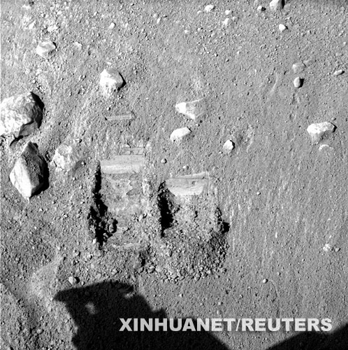 這張美國宇航局6月6日發布的照片顯示的是“鳳凰”號火星著陸探測器6月5日拍攝的“鳳凰”號挖掘臂挖掘火星土壤時留下的兩個坑。新華社/路透