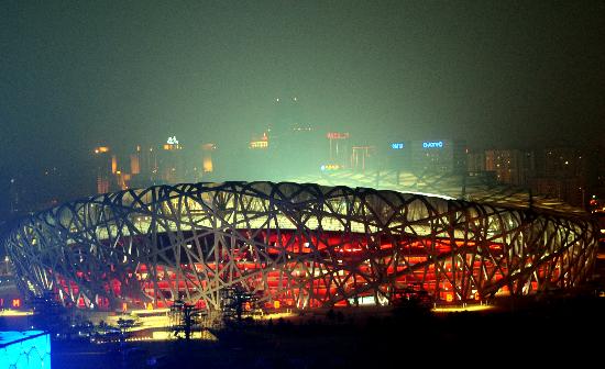 4月17日晚上拍攝的“鳥巢”。“好運北京”國際田聯競走挑戰賽4月18日至19日將在國家體育場(“鳥巢”)舉行,這將是國家體育場舉辦的首次正式比賽。