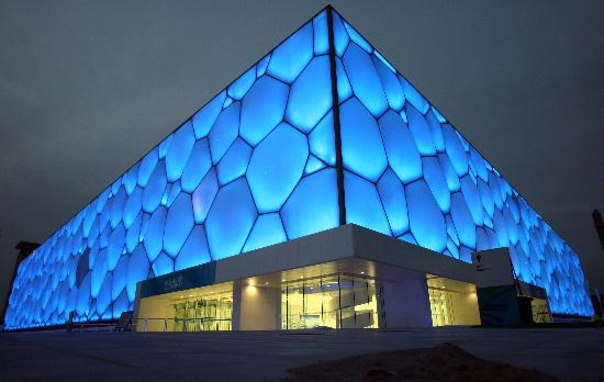 1月28日,北京奧運會標志性建筑之一――國家游泳中心(“水立方”)竣工并交付使用。據介紹,“水立方”是國內首個采用ETFE氣枕結構的場館,是世界上建筑面積最大、功能要求最復雜的膜結構場館。“水立方”是唯一一個由港澳臺僑、同胞捐資建設的2008年奧運會比賽場館,擁有座位17000個,其中永久座位6000個,臨時座位11000個。奧運會期間,“水立方”將承擔游泳、跳水、花樣游泳等比賽。奧運會后“水立方”將被改造成為以水為特色,集運動培訓、文化娛樂、健身休閑等功能于一身的國際化時尚中心。1月31日至2月5日,“水立方”將迎來建成后的首項賽事――中國游泳公開賽。圖為1月28日拍攝的國家游泳中心外景。