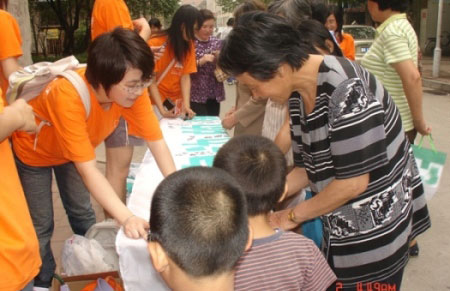 6月2日,奧運英語進社區活動在北京林業大學北門教師家屬區成功開展。在活動中,同學們積極宣傳奧運知識,通過答題競猜的方式向居民們介紹奧運歷史,講解奧運英語,并且向參與者贈送精心準備的綠色環保電池等小禮品。活動進行的十分順利,受到了周邊居民的熱烈歡迎。最后,大家倡導居民在印有北京奧運大橫幅上簽字留言,向首都奧運送上了各自的祝福。作為奧運活動月中的一項特色活動,此次活動加大了奧運在社區的宣傳工作,使居民們更加了解奧運知識,受到居民的好評。