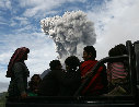 Powerful bursts of hot ash and gravel erupted from a rumbling volcano in western Indonesia early on Monday.