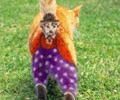 Dog in Levis pants and T-shirt