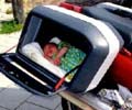 Cute baby sleeping in motor bike
