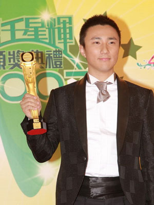 Amigo Choi poses with his "Vastly-improved Actor" trophy at the TVB's 40th anniversary awards ceremony in Hong Kong on Saturday, November 17, 2007. (Agencies)