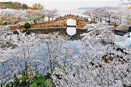 The cherry blossom plantation area at Turtle Head Isle, Wuxi, covering more than 650,000 square meters is a symbol of the friendship between people in China and Japan.