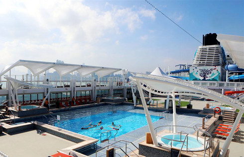Photo taken on Nov 17, 2017 shows the World Dream, the newest luxury cruise ship of Dream Cruises by Genting Hong Kong, at Kai Tak Cruise Terminal in Hong Kong. A ceremony was held on Friday to mark the maiden voyage of the cruise ship, which could accommodate more than 3,000 passengers.