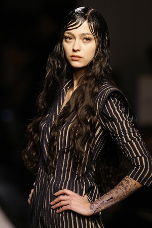 A model presents a creation by French designer Jean-Paul Gaultier as part of his Haute-Couture Autumn-Winter 2008-2009 fashion collection in Paris January 23, 2008. [Agencies]