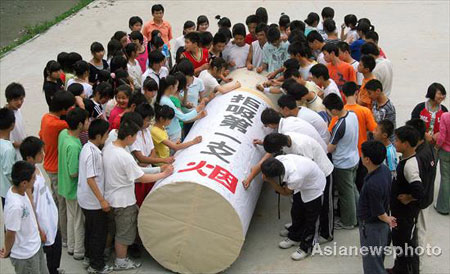 Updated: 2008-05-31 20:19 ![]() Students sign their names on a huge cigarette model to mark "World No Tobacco Day", which falls on May 31, in Huantan Middle School in Huaibei City, East China's Anhui Province, May 30, 2008. The Chinese characters on the model read "Refuse to smoke the first cigarette." The theme of this year's "World No Tobacco Day" is "Tobacco-free youth".[Asianewsphoto]