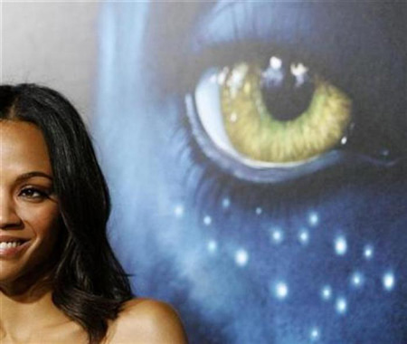 Cast member Zoe Saldana poses at the premiere of "Avatar" at the Mann's Grauman Chinese theatre in Hollywood, California December 16, 2009.[Agencies] |