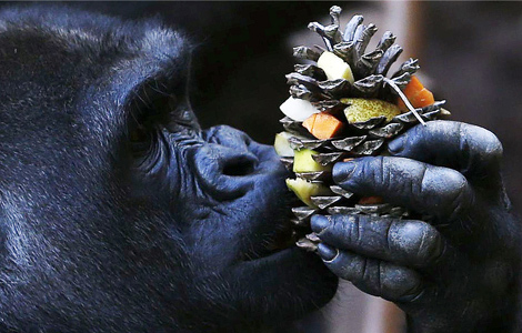 The lights are turned on for a giant menorah at the Reading Power Station in Tel Aviv, on the Jewish holiday of Hanukkah, Israel, Dec 4, 2013. Israel's electric company said on Wednesday it had created the world's largest menorah consisting of nine aerial platforms reaching 28 meters and lit with nine white light beams reaching the height of ten kilometers. Hanukkah, also known as the Festival of Lights and one of the most important Jewish holidays came to an end on Wednesday. [Photo/Agencies]