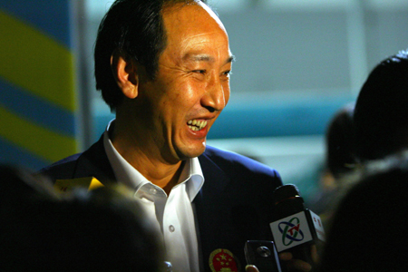 Sun Haiping,coach of Olympic champion 110-meter hurdler Liu Xiang, receives an interview at the Doha Internationa Airport upon arrival December 5,2006.Chinese Track and Field squad arrived in Doha in the early morning today for the 15the Doha Asian Games.[Xinhua]