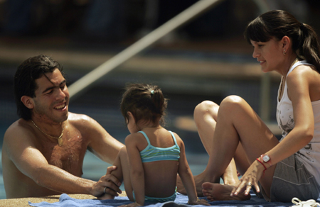 Florencia and his wife Vanesa at a hotel pool in Maracaibo July 1, 2007.