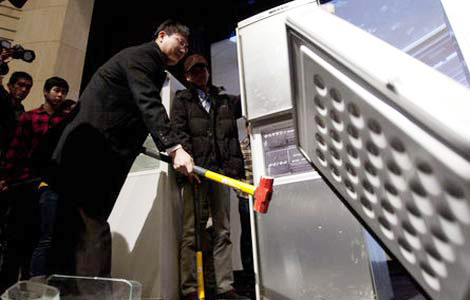 Lionel Messi of Spain's Barcelona holds the key to a car given him by Toyota President Akio Toyoda (L) after being named most valuable player following their win in the Club World Cup final soccer match against Brazil's Santos in Yokohama, south of Tokyo, Dec 18, 2011. [Photo/Agencies] |