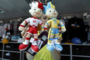 A vendor holds the Euro 2012 mascots Slavek (L) and Slavko in a souvenir shop in downtown Kiev June 6, 2012.