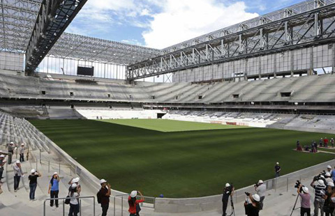 Brazil's Corinthians Arena stadium at Sao Paulo, which will host the opening match of the FIFA World Cup, was officially delivered on Tuesday, but in an incomplete state.