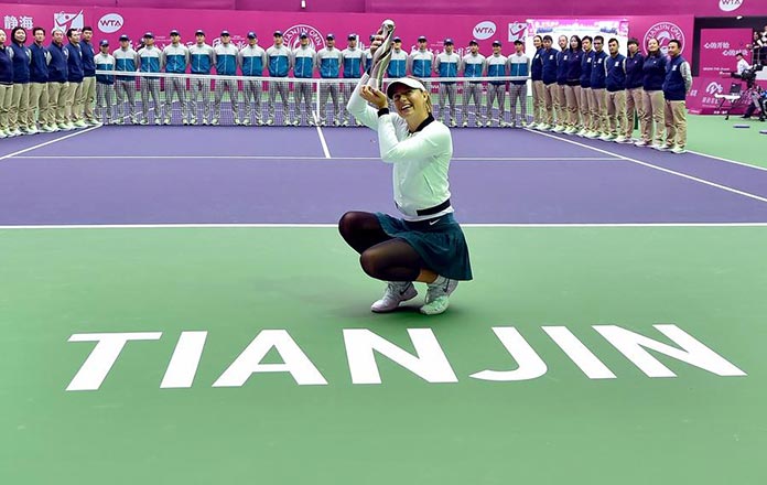 Maria Sharapova won her first WTA title since returning from a doping ban after defeating Aryna Sabalenka to win the Tianjin Open on Sunday.