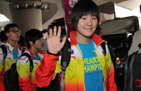 Chinese swimmer Ye Shiwen arrives at Inchon International Airport September 16, 2014. [Photo/Xinhua]