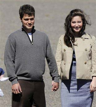 Bristol Palin, daughter of Republican vice presidential candidate Sarah Palin, walks with her boyfriend, Levi Johnston, as they await the arrival of Republican presidential candidate John McCain in Minneapolis for the Republican National Convention in St. Paul, Minn., Wednesday, Sept. 3, 2008. [Agencies]