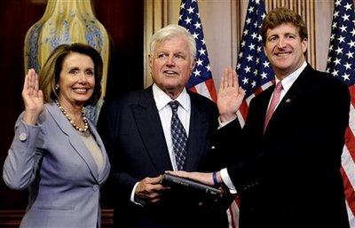 One office-seeker was not among them. In a scripted bit of political theater, Democrat Roland Burris of Illinois was informed he would not be seated because his paperwork was not in order. He pledged a lawsuit, the latest twist in a political drama that began when he was named to Obama's Senate seat by Gov. Rod Blagojevich, who has been charged with having attempted to sell the appointment. Obama was across town in a meeting with his economic advisers as the opening gavels fell in the House and Senate at noon. His inauguration as the nation's first black president is two weeks away. Senate Majority Leader Harry Reid, a veteran of numerous battles with President George W. Bush, made plain how glad he was the old administration was winding down. "We are ready to answer the call of the American people by putting the past eight years behind us and delivering the change that our country desperately needs," he said on the Senate floor. We are grateful to begin anew with a far more robust Democratic majority." At the same time, in comments directed at Republicans, he said, "we are in this together" when it comes to the economy, the wars in Iraq and Afghanistan, health care and the country's energy needs. Sen. Mitch McConnell of Kentucky, the Republican leader, replied in a speech of his own, saying, "The opportunities for cooperation are numerous." He said Democrats should avoid a "reckless rush to meet an arbitrary deadline" to pass an economic stimulus bill that could reach $1 trillion, and he outlined possible changes in the approach Obama and the Democratic congressional leaders have been considering. Among them was a proposal to cut taxes by 10 percent. Another was to lend money to hard-pressed state governments rather than give it to them. "States will be far less likely to spend it frivolously" in that case, he said. By the new political calculus, McConnell will soon be the most powerful Republican in government after elections that handed Democrats the White House and left them with gains of least seven seats in the Senate and 21 in the House. McConnell's counterpart in the House, Republican leader John Boehner of Ohio, handed the speaker's gavel to Pelosi in a traditional unity tableau. He, too, pledged cooperation, then said, "America's potential is unlimited. But government's potential is not. We must not confuse the two." Obama spent much of Monday in the Capitol, conferring with Republicans and Democrats alike on the economic stimulus measure he hopes to sign early in his term. The nation's consumer spending has plummeted, manufacturing has withered and job losses have grown in recent months, adding urgency to the legislative effort in contrast to the customary sluggish start to a new Congress. Strikingly, the war in Iraq drew scant mention during the day, a contrast to the weeks of debates that Democrats once had forced to try and maneuver Bush into withdrawing American forces. Reid mentioned the fighting in passing when he noted the country was fighting two wars overseas, a reference to Iraq and Afghanistan. Pelosi was even more indirect, saying, "We cannot afford to wait to modernize and rebuild our military." Like Reid, she focused her remarks on domestic issues, the economy chief among them. "We need action and we need action now," she said again and again, calling for help for "hardworking and still hopeful Americans" bearing the brunt of the economic crisis, for the states struggling to provide services, for families without health care, for a climate crisis and for energy needs. Speechmaking and celebrations aside, House Democrats pushed through a series of rule changes, including one that calls for greater disclosure of earmarks. They also repealed the six-year term limit for committee chairman. It was a legacy of the Republican Revolution that swept through Congress in 1994, and in erasing it Democrats evinced confidence in the strength of their majority status. In all, 34 senators were sworn it, and apart from the controversy involving Burris, one other Senate seat was in limbo. Democrat Al Franken holds a 225-vote lead over former Sen. Norm Coleman in Minnesota, a result certified on Monday by the state Canvassing Board. He has not yet received a certificate of election, and with Republicans threatening to protest, Democrats made no attempt to seat him. Inevitably, it was a day for personal transitions. Sen. Joseph Biden of Delaware took the oath of office for a seventh time for a seat he has held for more than 30 years and will soon relinquish to become Obama's vice president. Anh "Joseph" Cao, who arrived in the United States as an 8-year-old war refugee, was sworn in as the nation's first Vietnamese-American lawmaker. He's a Louisiana Republican. Across the Capitol in mid-afternoon, the chamber nearly deserted, Robert C. Byrd of West Virginia, 91, spoke about his 50 years in the Senate. "I look forward - yes, look forward - to the next 50 years," he said. He spoke from a wheelchair, his hair white, his voice often faltering. |