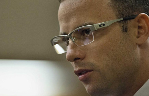 | Oscar Pistorius looks on during his trial at the high court in Pretoria April 7, 2014. Pistorius wept and retched into a bucket in court on Monday during graphic forensic testimony about the death of his girlfriend, Reeva Steenkamp, whom he is accused of murdering on Valentine's Day last year. [Photo/Agencies] |