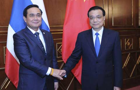 Premier Li Keqiang met with his Thai counterpart, Prayuth Chan-ocha, in Milan, Italy, on Oct 16, 2014.